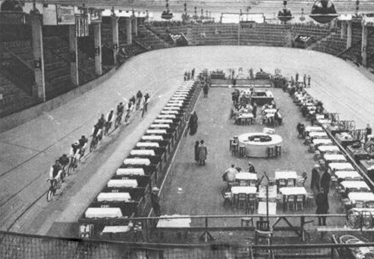 Am 10. Oktober 1928 wurde die Rheinlandhalle mit der Veranstaltung „Bunter Schnitt durch Kölns Sport“ eröffnet. Zur Gürtelstraße hin standen damals imposante Eingangsgebäude, die heute nicht mehr existieren. Wenige Wochen später, am 2. November, folgte der Startschuss für das erste Kölner Sechstagerennen. Es gewannen die Kölner Lokalmatadoren Gottfried Hürtgen und Viktor Rausch.